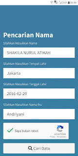 Tolong bunda di perhatikan cara mengetik di pencarian nama , nama anak di wajibkan huruf Besar dan perhatikan gambar di atas ya bun. lalu klik saya bukan robot setelah itu klik cari data. lalu gulirkan ke bawah nanti akan terdata nama anak dan no NISN nya. kalau belum berhasil di perhatikan lagi contoh gambar di atas sudah benar belum. karena data anak bunda sudah semua terdaftar,